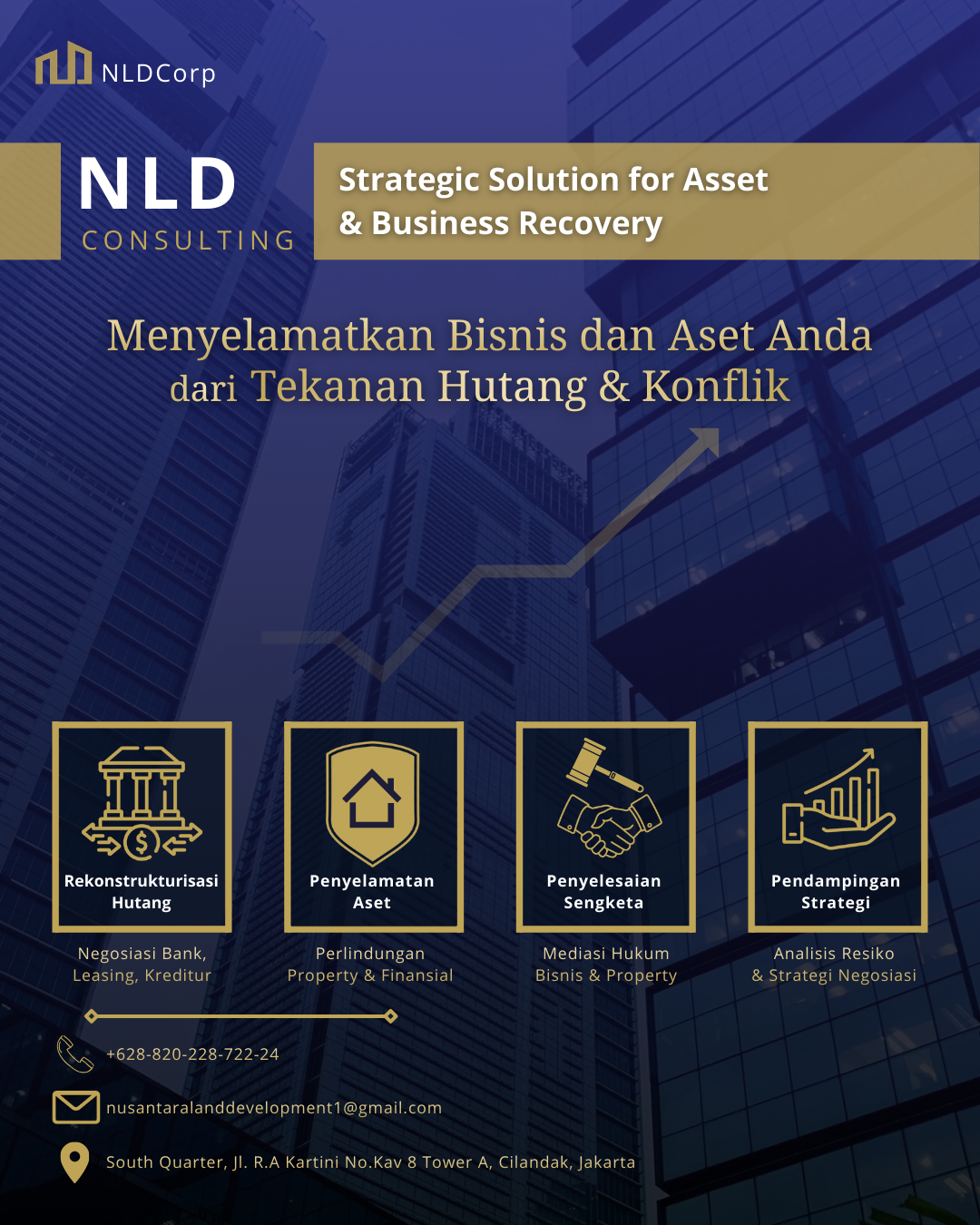 NLD Consulting adalah perusahaan konsultasi dan mediasi yang berfokus pada restrukturisasi hutang, penyelamatan aset, serta penyelesaian sengketa bisnis dan properti.