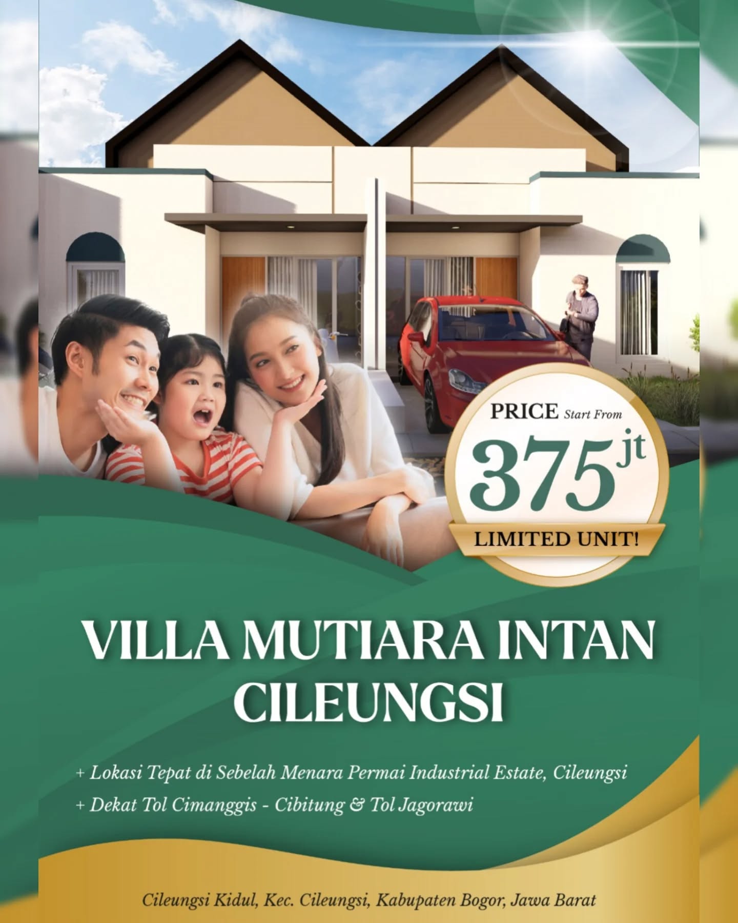 Bogor, Jawa Barat – Kebutuhan hunian yang nyaman, strategis, dan terjangkau kini semakin tinggi, terutama di wilayah penyangga ibu kota seperti Kabupaten Bogor. Menjawab kebutuhan tersebut, proyek perumahan Villa Mutiara Intan di kawasan Cileungsi hadir dengan penawaran menarik: cukup 3 juta rupiah all-in, konsumen sudah bisa mendapatkan rumah siap huni hingga terima kunci.